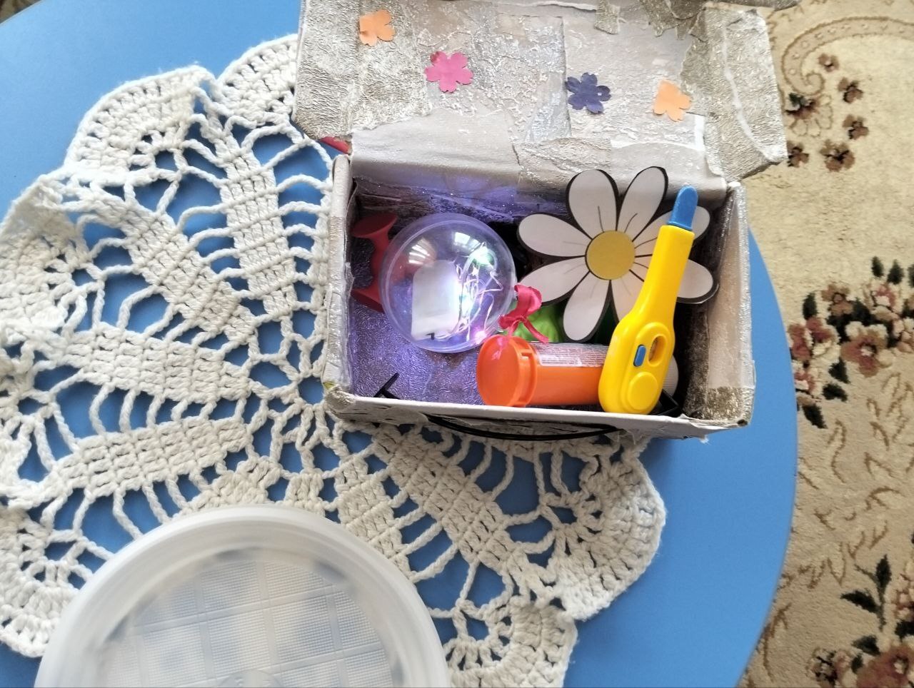 🌞"Волшебный сундучок", куда дети положил свои секретики и договорились, что каждый вечер будут рассматривать их все вместе. 😉
