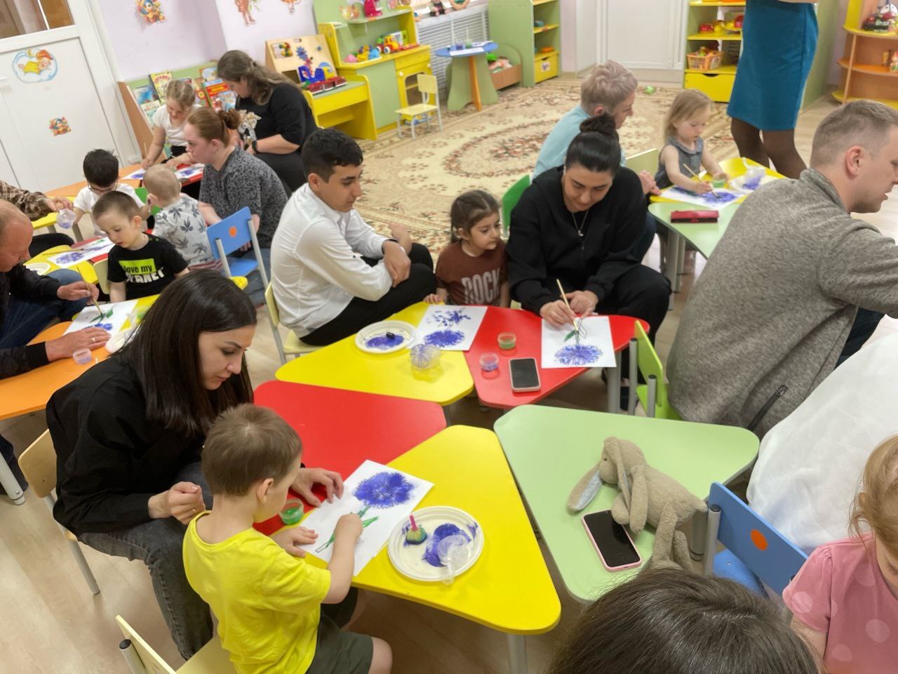 Родители и дети погрузились в художественную деятельность , выбирали различные способы раскрашивания цветка. От традиционных способов- кистью 🖌и карандашом✏️, до нетрадиционных - штампы, ватные палочки, пакетики.